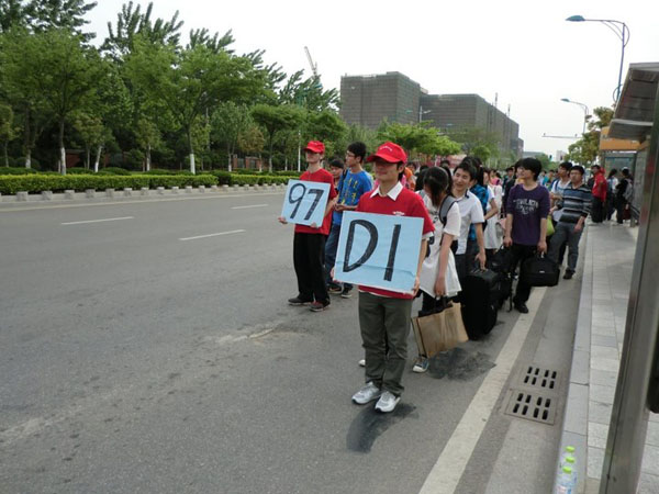 正门公交站台处有序展开。当天,爱心社的志愿者们主要负责组织和引导当天的公交乘坐秩序,以便有效地避免和缓解仙林地区的交通拥堵现象。