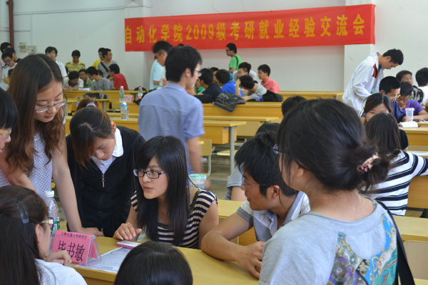 这次有近300名大三学生参加了交流会,现场气氛非常热烈,活动持续了三个小时才结束。学生普遍反映这次活动效果非常好,感谢学院为他们搭建了这样一个交流沟通的平台,以前总困惑信息渠道太窄,这次的经验交流会就像一次集市,有各类高校考研和各类企业就业信息,种类齐全,信息全面,特别是这种咨询的方式让他们感觉很随意,很放松,让他们通过这次交流会受益匪浅,在自己以后的考研或就业道路上走得更加顺畅。