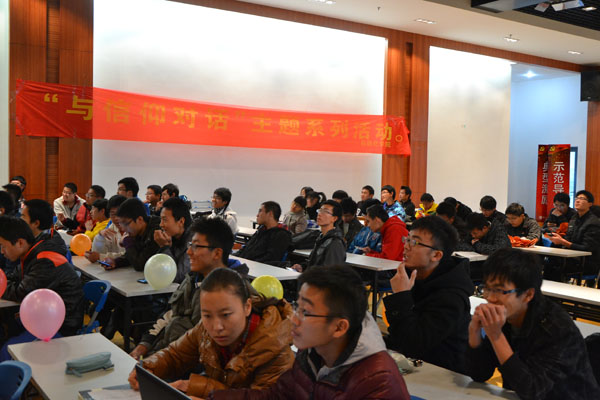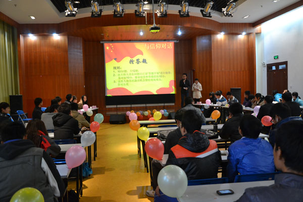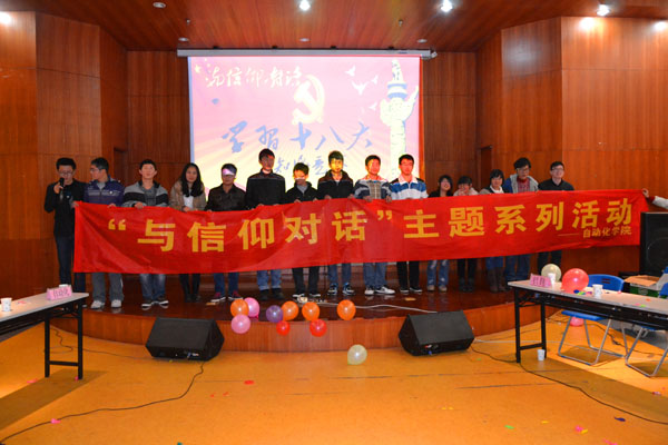 “与信仰对话”系列活动之一,也是学院积极响应学校学习宣传党的十八大精神的号召,认真落实学习宣传党的十八大精神的一次主题教育。学院希望通过此次活动把广大学生的思想和行动统一到党的十八大精神上来,引导学生胸怀理想、坚定信念、刻苦学习,有力促进学生全面发展和学院各项工作的顺利开展。