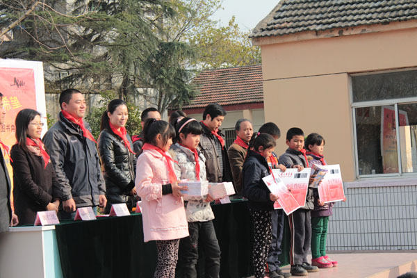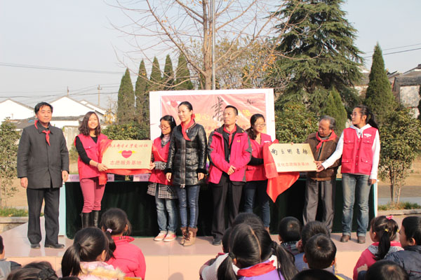 分团委书记叶晓勤和南京图书馆读者服务部主任朱志伟、南京图书馆团委副书记赵曾以及尧化门流动人口子弟小学校长胡德宝和教导主任黄仁进出席了本次仪式。