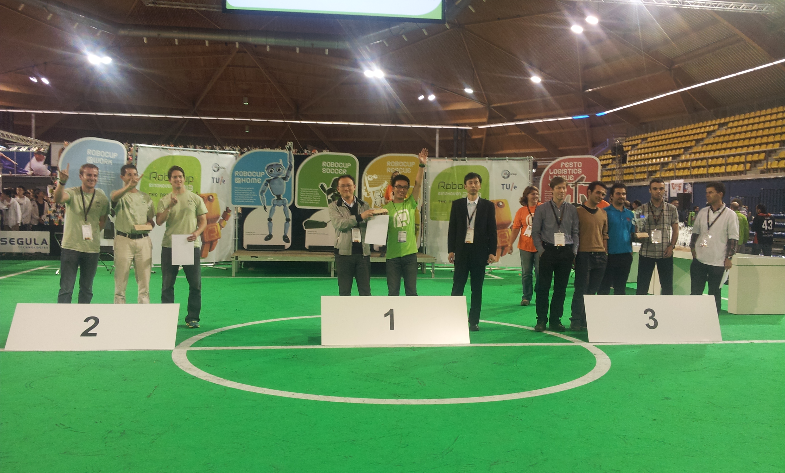 在Robocup3D仿真足球比赛上,经过预赛后的队伍来自美国、德国、中国、英国、法国、葡萄牙、日本、巴西、澳大利亚、伊朗等11国家的18支队伍参与冠军角逐。Apollo3D队历经种子排位赛、第一轮小组淘汰赛、第二轮小组淘汰赛、第三轮小组淘汰赛、第四轮小组淘汰赛,进入4强;在半决赛中,遭遇了来自东南大学的seu-jolly队,比赛中经历了先失1球、到扳平比分、到最后十秒绝杀,最终以2:1的比分挺进决赛;决赛中碰到了势力强大的前两届世界冠军utaustinvilla队,Apollo3D队在上半场先进一球的情况下,下半场顽强抵挡了对手的进攻,最终以将1:0的比分保持到了终场,夺得冠军。