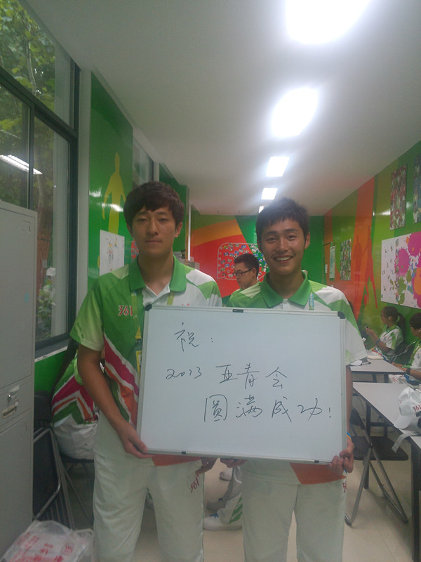 在亚青会期间最值得采访的当属辛勤的志愿者们,19号上午9点,队员们开始了对志愿者们的采访。志愿者们每天早上5点开始工作,有时候要到晚上12点多才能休息。中午要顶着炎炎的烈日为运动员和观众服务,在亚青期间不仅运动员们在流汗为国争光,志愿者们同样在流汗无私奉献。他们不求回报,只求无悔,更多的是一种责任。