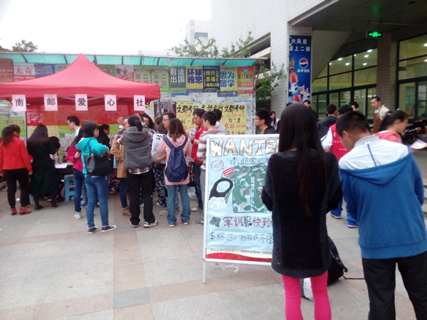 8日下午新生军训闭幕式一结束,爱心社的社员们九早早的守候在回收军服的帐篷下,虽然天气渐凉却阻挡不了同学们的饱满热情,他们热情地向过往的新生宣传这个活动,在得知爱心社利用军服变卖的善款已经为尧化门小学建立了一个图书角,之后也将继续投入在义工点的建设中时,有一位同学当场脱下军服送到了在场的爱心社社员手中,让人感动。即便是军训刚结束,爱心社大一干事们仍旧不辞辛劳,积极的在现场整理衣服或是回宿舍鼓动室友一起为爱心出一份力。整个活动中,同学们配合默契,各司其职,团结协作,本着自愿原则,让回收军服的工作井然有序地进行着。