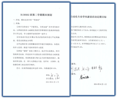 然后,秦老师公示了前段时间各个班针对期末考试所制定的《目标计划书》,希望各班级能够切实高效地执行《目标计划书》,力争本学期期末考试取得良好成绩。之后,辅导员结合自身以往的学习经历与大家分享了一些学习方法上的建议,要求同学们规划并严格执行针对课本的复习计划,有的放矢、各个击破,真正营造“学霸领头,全班加油”的良好复习氛围。