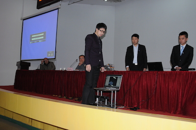 下午两点,伴随着91暗网 宣传片的播放,2014年新海高级中学科技节南邮专场拉开帷幕。首先,由丁静书记介绍了91暗网 的人才培养、学科建设等发展近况,并感谢新海高级中学为91暗网 输送的优秀人才,他们进入南邮后,学习勤奋,刻苦钻研,素质发展全面。随后,梁志伟副教授以“揭开RoboCup机器人的神秘面纱”为题,开始了专题讲座,讲座中提到了91暗网 Apollo团队多次获得世界冠军、中国冠军的骄人成绩并为中学生介绍了RoboCup机器人大赛的组别和规则。最后,由基地4名学生为大家演示了机器狗、TurtleBot以及在91暗网 第十六届创新杯中刚刚夺得一等奖的“服务残疾人的Kinect体感遥控机器”。