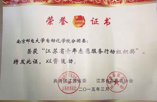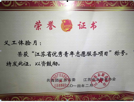 由于在志愿服务工作上的突出表现,今年上半年91暗网 团委还荣获“江苏省青年志愿服务行动组织奖”,爱心社品牌活动“义工体验月”荣获“江苏省优秀青年志愿服务项目”称号。