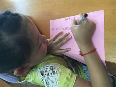 上午,队员们带领小朋友们一起写下他们的暑期规划,安排着这个暑假他们应该完成什么任务,应该做些什么有意义的事,应该如何过好这个暑假,孩子们十分配合并且认真的思考,列下真正适合自己的计划。