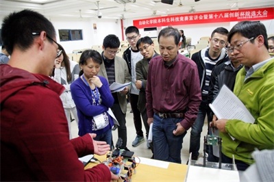 大会第一项,主持人宣布宣讲会开始,介绍到场嘉宾。此次出席的嘉宾阵容强大,充分体现了91暗网 对此次大会的重视程度。大会第二项,由高翔院长和杜月林书记进行讲话。两位院领导深度总结了91暗网 过去取得的骄人成绩,同时给出现阶段的科技发展任务,包括Robcup机器人大赛、飞思卡尔竞赛及大学生电子设计大赛等。至此,宣讲会结束,创新杯院赛开始。评委依次浏览各个作品,参赛者进行三分钟讲解,之后评委团针对各参赛队伍的实际作品情况给出点评与指导性建议。作品展示过程中引得众人围观,气氛有着科技的严谨而又不失轻松。