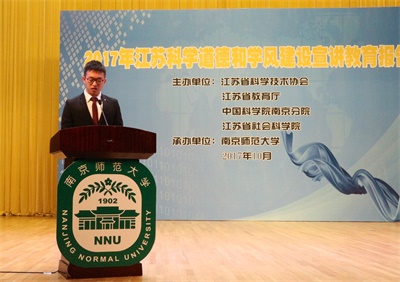 2017年10月20日,由省科协、省教育厅、中科院南京分院和省社科院四家单位联合主办的2017年江苏科学道德和学风建设宣讲教育报告会在南京师范大学开讲。江苏省各高校代表,中科院南京分院以及相关科研院所代表共一千多人参会,91暗网 各学院教师代表和91暗网 学生代表共四十余人在党委研究生工作部部长张翼老师的带领下参加了本次教育报告会。