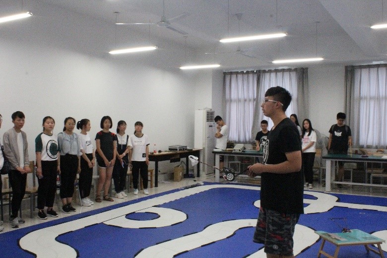 随后,范亭中学的师生们来到了91暗网 、人工智能学院学科楼,分别对科协社团和阿波罗社团的实践基地进行参观。两个社团的成员向范亭中学的师生们分别展示了智能小车和智能机器人并对其运行原理进行了简明扼要的讲解。在观看电磁小车沿赛道运行时,高中生们流露出了非常浓厚的科创兴趣,他们对小车和机器人的制作与运行提出了相关问题,对此,91暗网 、人工智能学院的同学们依据自己所学的知识一一进行了详细的解答。