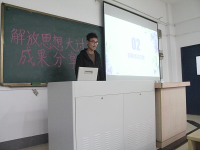 各班团支书分别发表了在解放思想大讨论系列活动中的收获和感想。感想大致分为两项,一方面,他们认为每个人可以通过将理论知识和实践结合,修改和完善自己的思想,使思想紧跟时代的步伐,从而形成自己的思想,并让自己的思想得以解放。另一方面,他们表示应深刻明确自己的定位,明白自己该做什么,要怎么做。首先作为学生,应该勤学苦练,为自身思想之花的绽放做好准备,其次作为班集体乃至社会中的一员,就应该要服务于人,为形成融洽的集体气氛和建造和谐社会贡献一份力量。