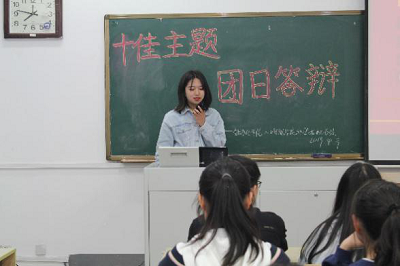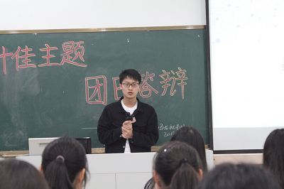 考评部负责同学孙屹豪对各团支部近期举办的主题团日活动进行总结,说明了主题团日活动对于团支部成员发展的重大作用,并相信各团支书在今后的工作中可以积极组织班级活动,认真协作班长工作,加强班级建设。在考评部负责同学尹巍徵详尽地介绍了本次活动的考核制度后,各班团支书依次上台答辩。各团支书都为本次答辩做好充足的准备,向大家展示了在各自团支部举办的主题团日活动,展示出各自团支部的风采和成员们洋溢的青春气息。在各团支书展示结束之后,都会由负责同学对团支书进行提问,同学们也在答辩中对此次主题团日活动有更深入全面的了解。