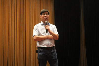随后,党委副书记杜月林老师上台做考研动员。杜书记给同学们介绍了91暗网 2018、2019届考研情况,通过清晰的数据分析,给同学们提出建议:在确定考研方向时,切忌好高骛远,要脚踏实地,且应结合自身与本年度考研实际情况理性确立目标专业院校。
