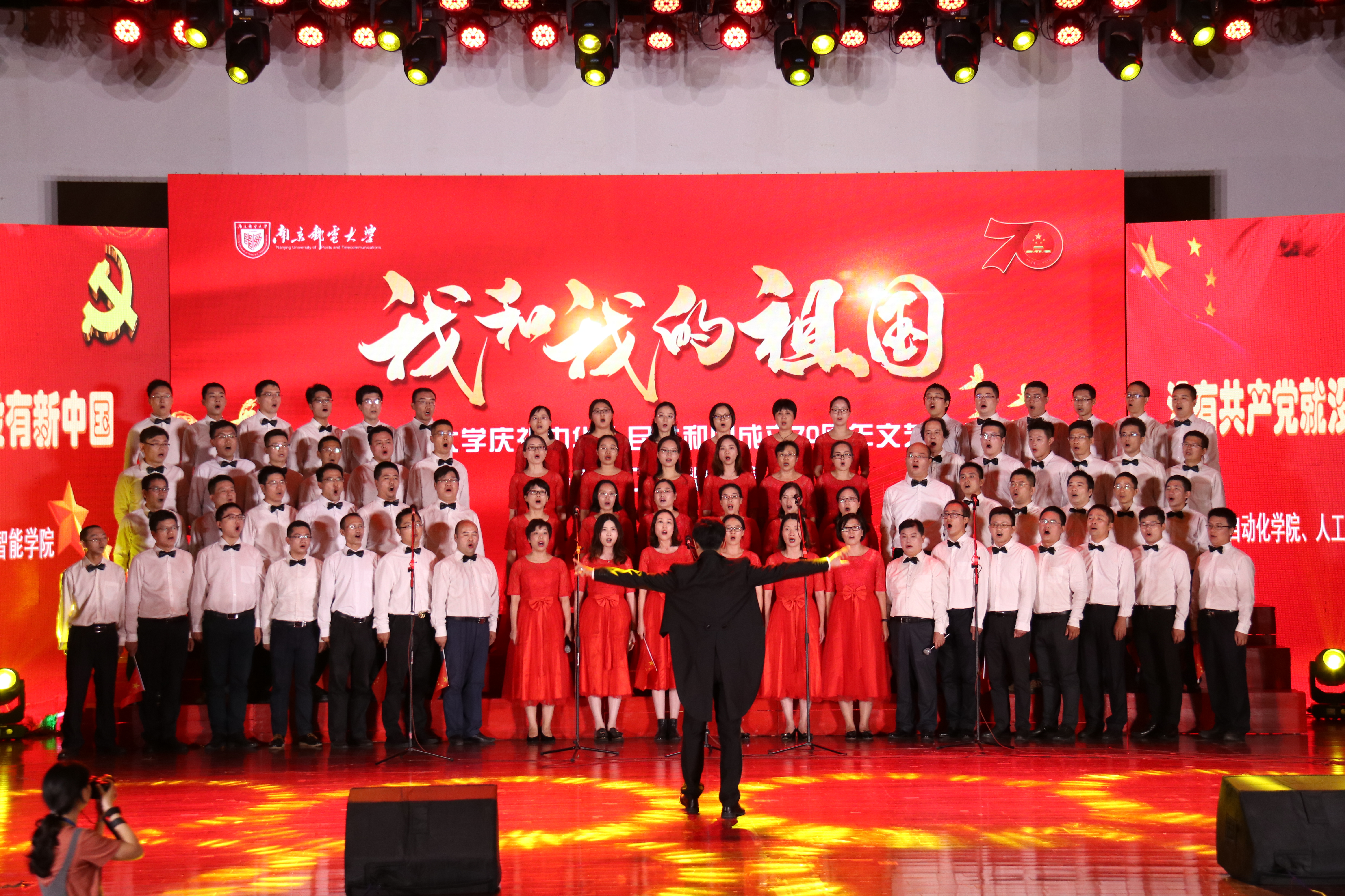 929日下午,仙林校区青春剧场,91暗网 庆祝中华人民共和国成立70周年文艺汇演暨教职工合唱比赛在激昂的啦啦操表演中拉开帷幕。