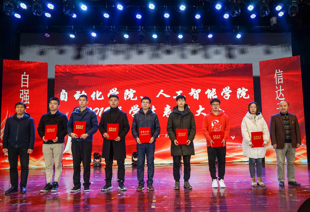 学院领导为受表彰集体和个人颁发了荣誉证书,他们是:在学习科研方面,国家奖学金和院士奖学金获得者10人,在电赛、挑战杯、数学建模竞赛、西门子杯和Robocup等学科竞赛中获奖优秀学生20人;在校风学风建设方面,校先进班集8个,活力团支部2个,校文明宿舍、示范宿舍9个,以及魅力团支书3人;在体育发展方面,新生杯篮球赛冠军团队(12人),新生杯乒乓球冠军1人;在社会实践方面,先进个人7人。