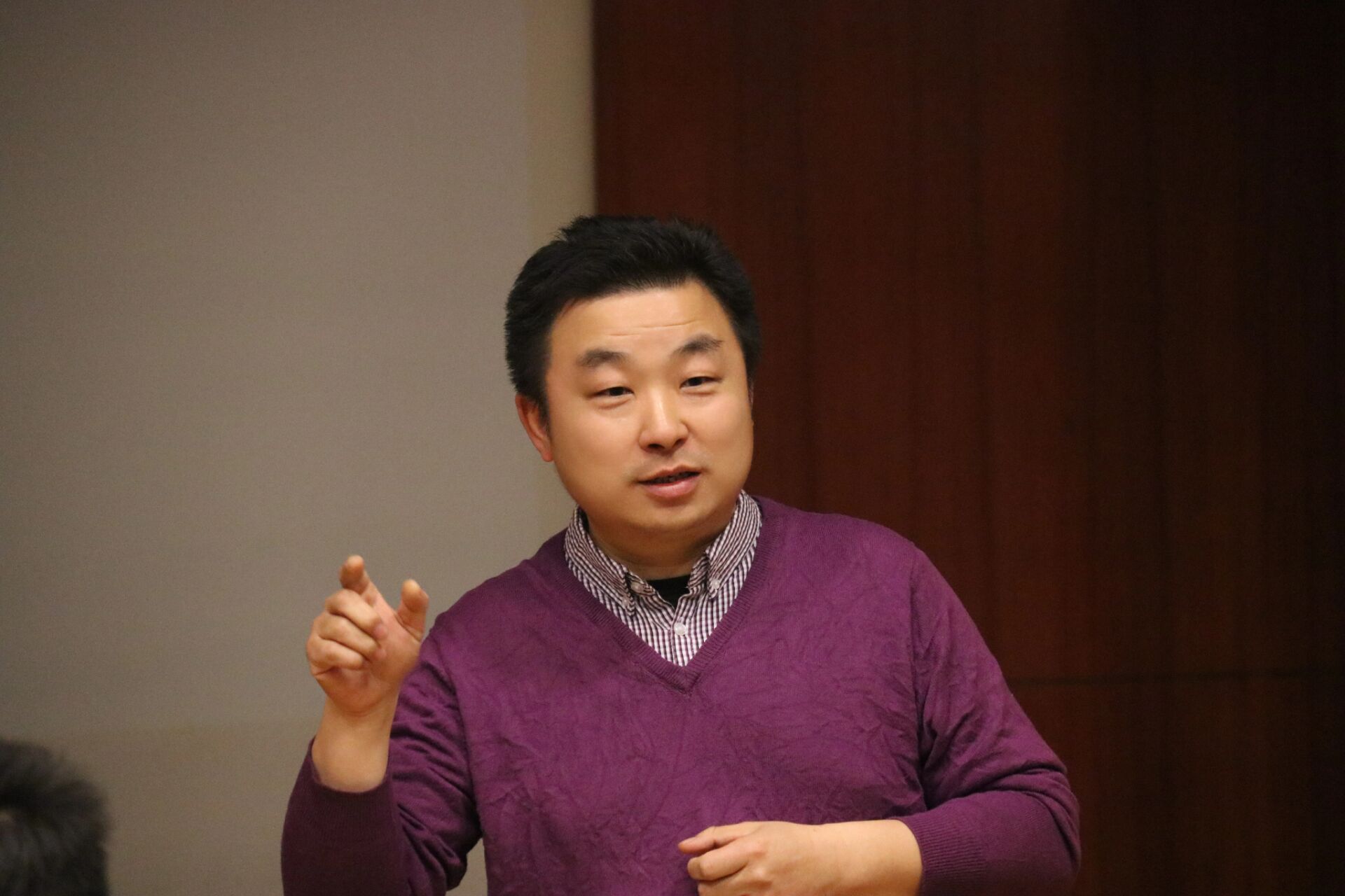 本次活动邀请了顾红艳女士和潘志刚老师,学院大一大二学生共计三十余人来到活动现场,2019级仲露同学担任主持人。