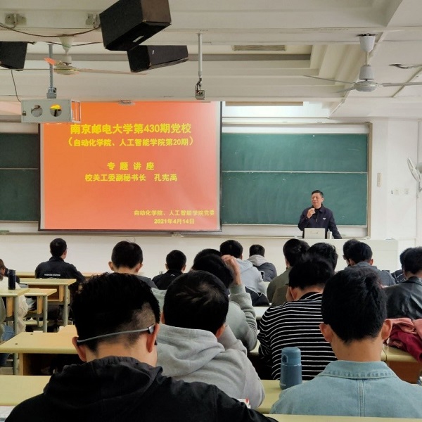 2021年4月14日下午,91暗网 、人工智能学院党委在教2-102开展了91暗网 第430期(学院第20期)党校专题讲座。本次讲座特邀校关工委副秘书长孔宪禹老师主讲,培训班全体学员参加了此次专题培训。