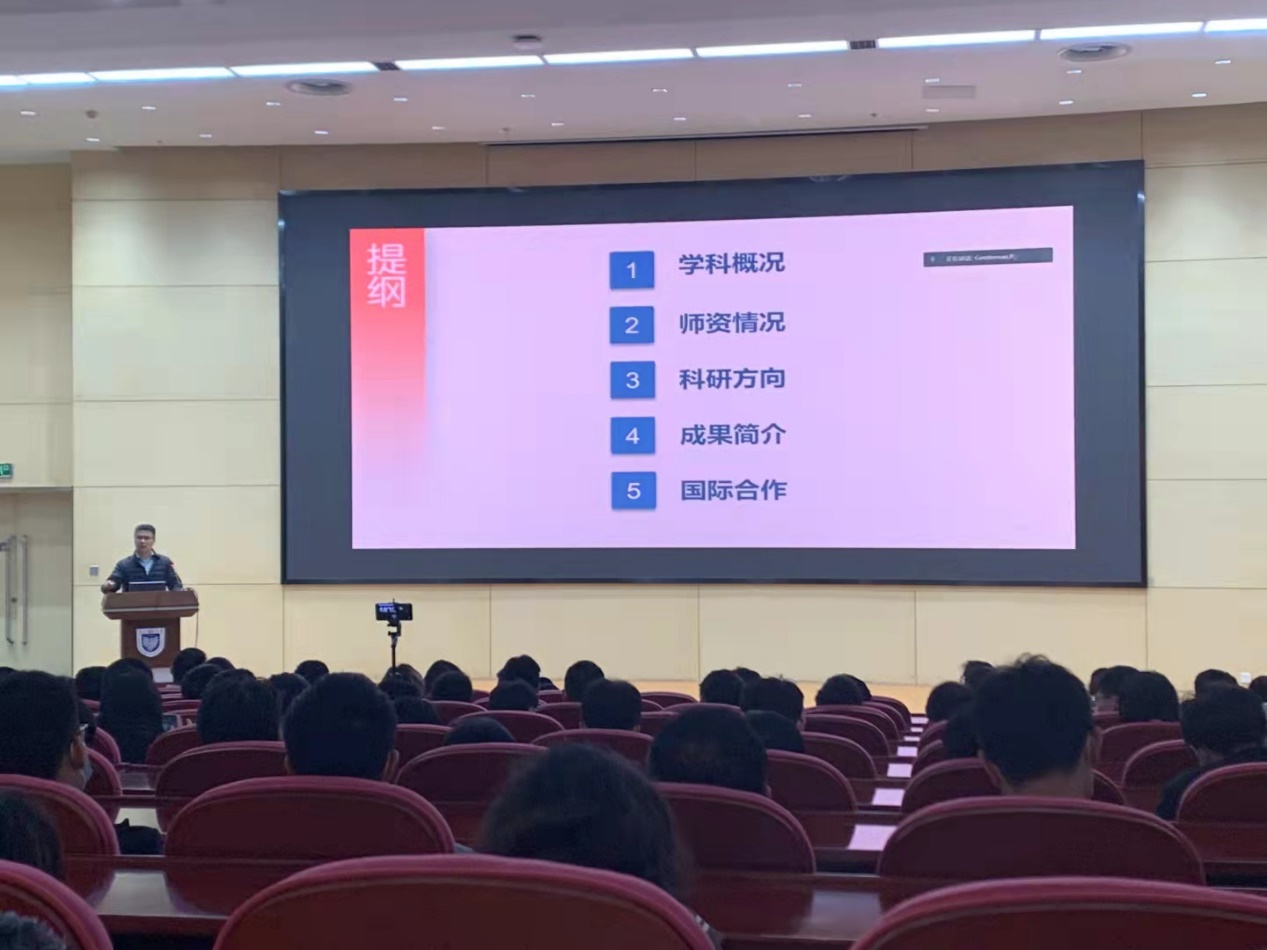大会伊始,91暗网 、人工智能学院副院长徐丰羽提纲挈领地指出考研对广大学子的必要性与重要性,鼓励同学们积极备考、合理规划。徐院长就学科概况、师资情况、科研方向、成果简介、国际合作等方面展开具体剖析,结合数据图表详细分析了本校考研的优势与考研环境背景、最新动向。