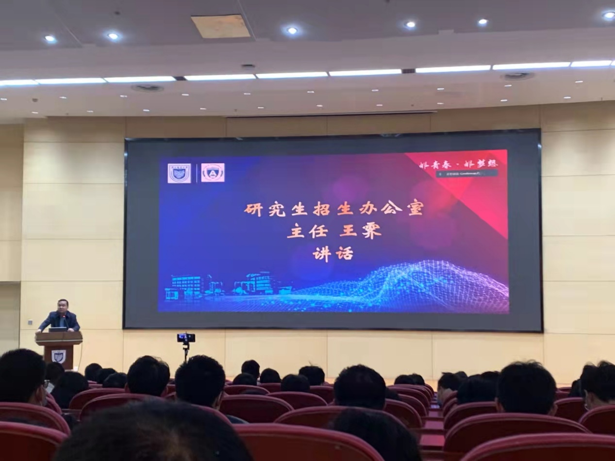 研究生招生办公室主任王霁从考研环境、院校选择、考研流程等方面进行了交流分享,提醒同学们理性看待考研人数逐年递增现象,根据自身定位和规划合理选择报考院校,了解把握考研流程和时间分配。同时,王主任由91暗网 研究生招生实际出发,结合详实的数据,介绍了本校考研在报考、就读、未来就业等阶段的优势,希望同学们拓宽视野,理性择校。
