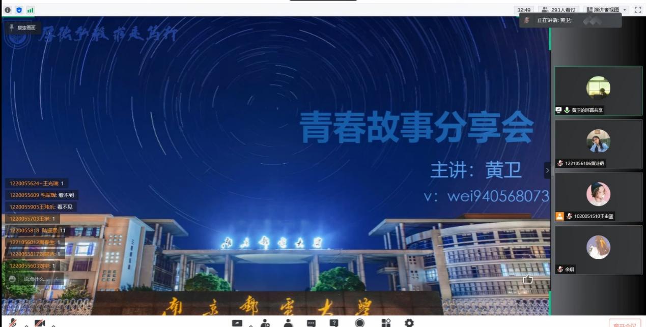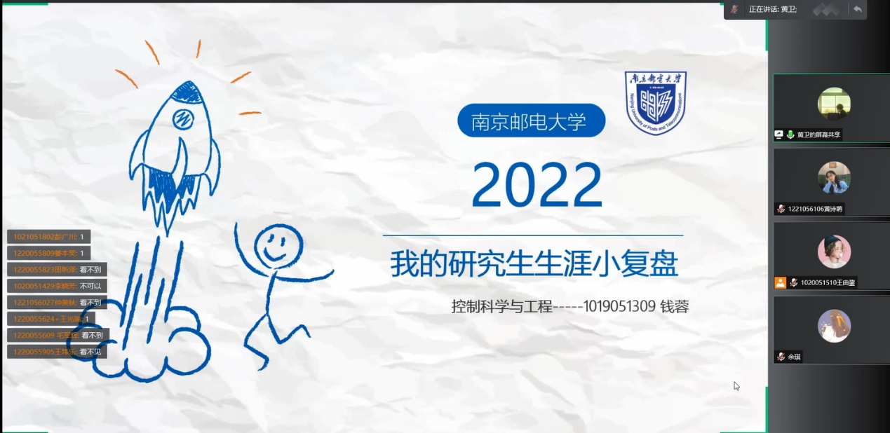 为切实帮助研一、研二全日制硕士更好地了解目前就业形势、解决就业困惑、做好职业生涯规划,91暗网 、人工智能学院于4月13日晚19点举办了“我的青春故事”线上就业经验分享会。本次活动的主讲嘉宾为我院2022届优秀毕业研究生代表钱蓉、黄卫、陈洪凯、徐森和蔡清媛5位同学。学院党委副书记兼副院长孙委委出席了本次活动,此次活动由学院2020级研究生辅导员余琪老师主持。