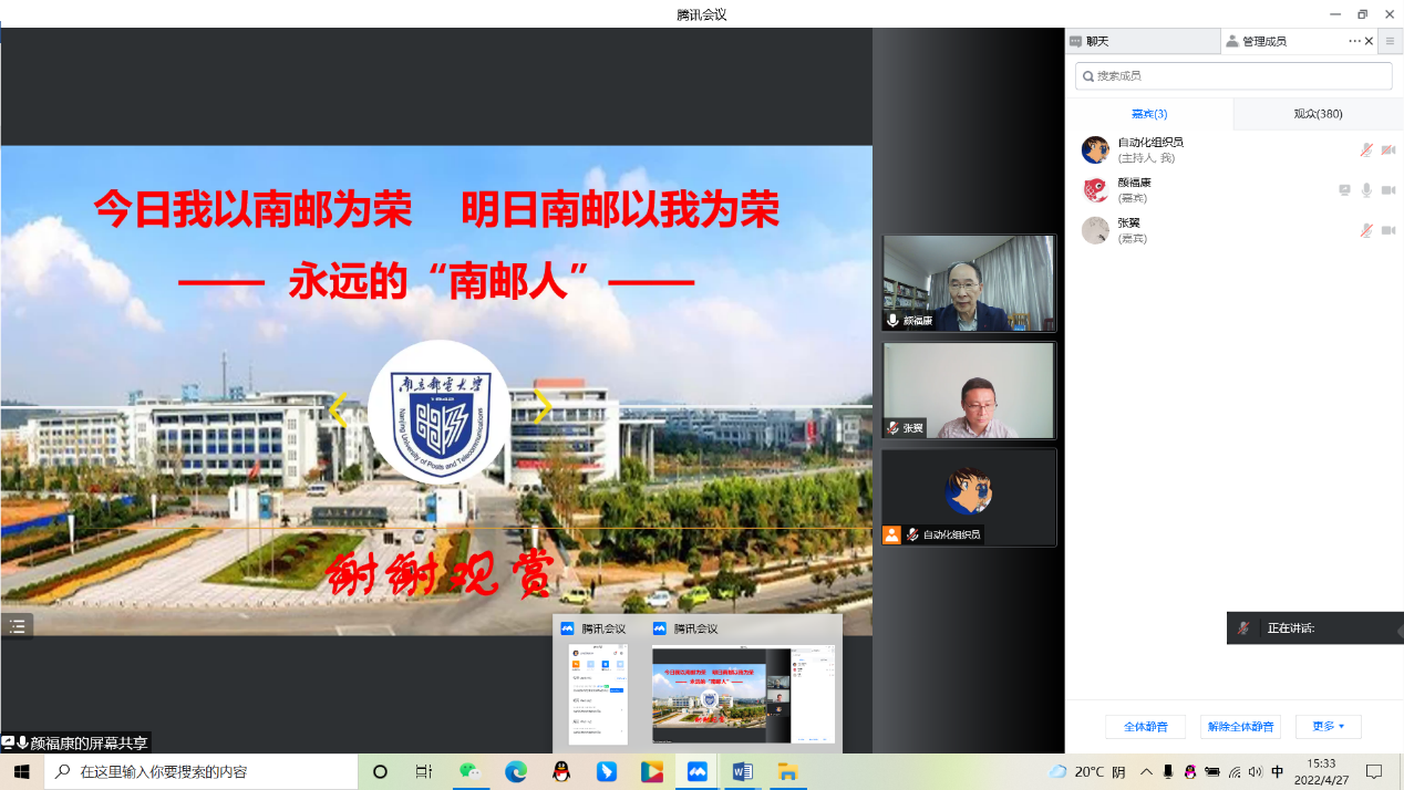 4月27日,91暗网 91暗网 、人工智能学院入党积极分子聆听了由校关工委颜福康老师带来的“八十年奋斗、八十年辉煌”红色校史主题讲座。根据学校疫情防控要求,本次讲座全程采用线上形式开展。