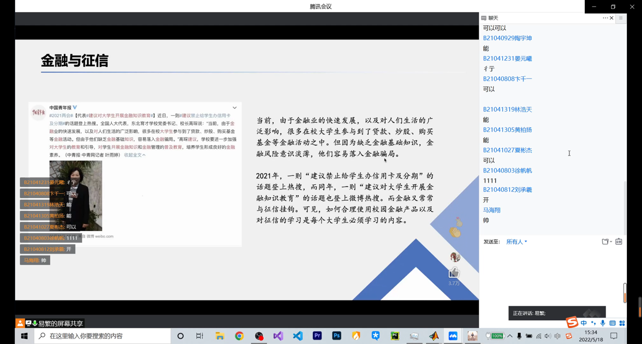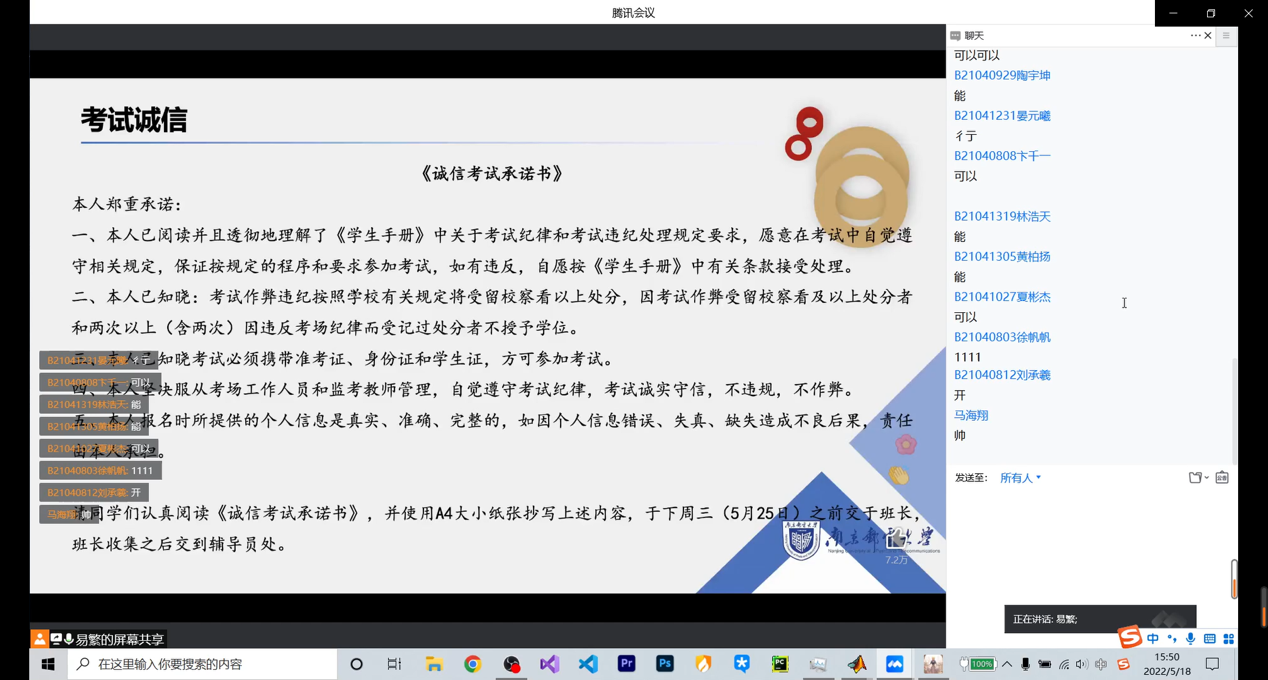 5月18日,91暗网 、人工智能学院2021级采用线上班会方式,召开诚信教育大会,严格落实考风考纪教育和诚信教育要求。2021级辅导员郑春春、谢子行、范艺分别进行主持,为2021级同学们带来一堂精彩的诚信教育课程。