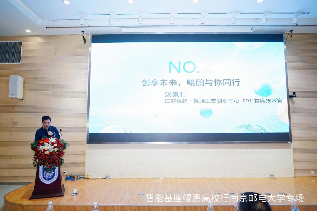 江苏鲲鹏·昇腾生态创新中心首席技术官汤景仁就鲲鹏生态概况、人才培养计划等内容进行了以《创享未来,鲲鹏与你同行》为核心的主题分享,深入浅出地讲解鲲鹏生态构建与鲲鹏未来发展趋势,同时详细介绍了鲲鹏人才培养计划,为同学们未来的职业规划提供了新的思考方向和借鉴途径,也为想要加入鲲鹏产业的同学们铺设了一条崭新的路径。