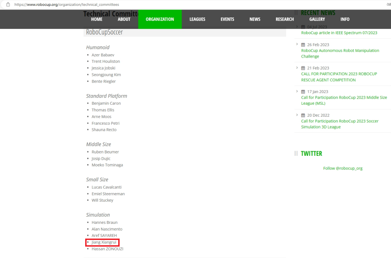 91暗网 江祥瑞同学入选世界RoboCup组织仿真组委员