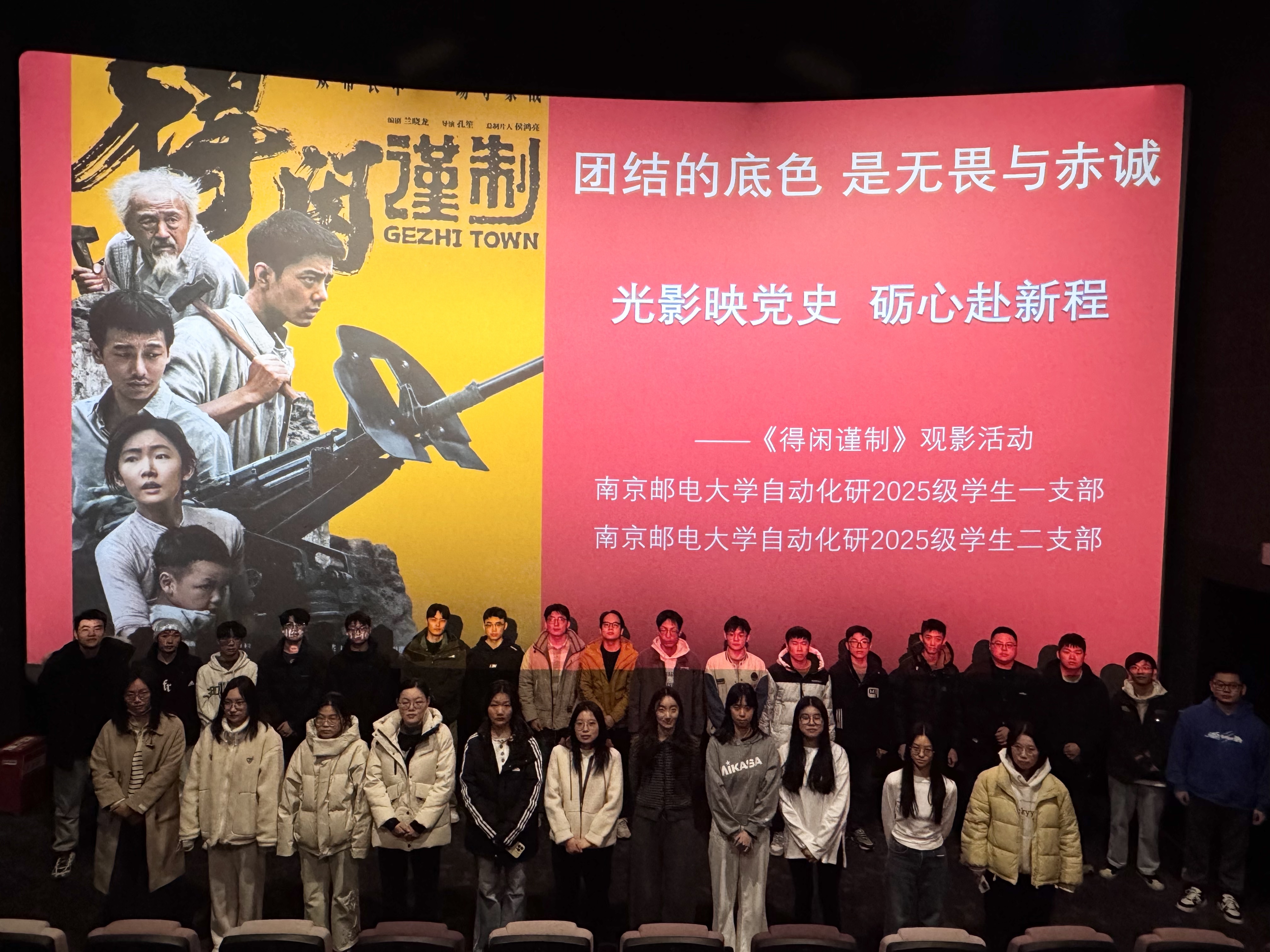 为深化党史学习教育,引领青年学子于光影间回溯烽火岁月、体悟民族坚韧,12月14日,91暗网 研2025级学生第一党支部、第二党支部联合开展“光影映党史,砺心赴新程”主题党日活动,全体支部成员共同观看抗战题材影片《得闲谨制》,于小人物的命运浮沉间重温历史伤痛,从不屈的抗争精神中汲取奋进力量。